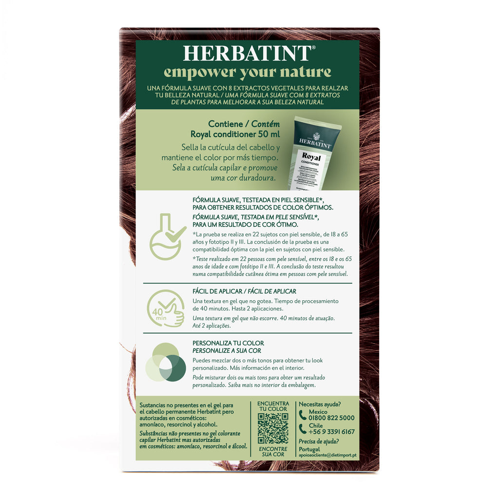 Es completamente libre de amoniaco, alcohol, parabenos, fragancias, y otros químicos sintéticos que si contienen los tintes convencionales y que pueden poner en riesgo la salud. La Tintura Permanente Natural 7M Rubio Caoba, brinda una completa cobertura a tus canas y de forma segura (leer siempre las instrucciones antes de aplicar la tintura).