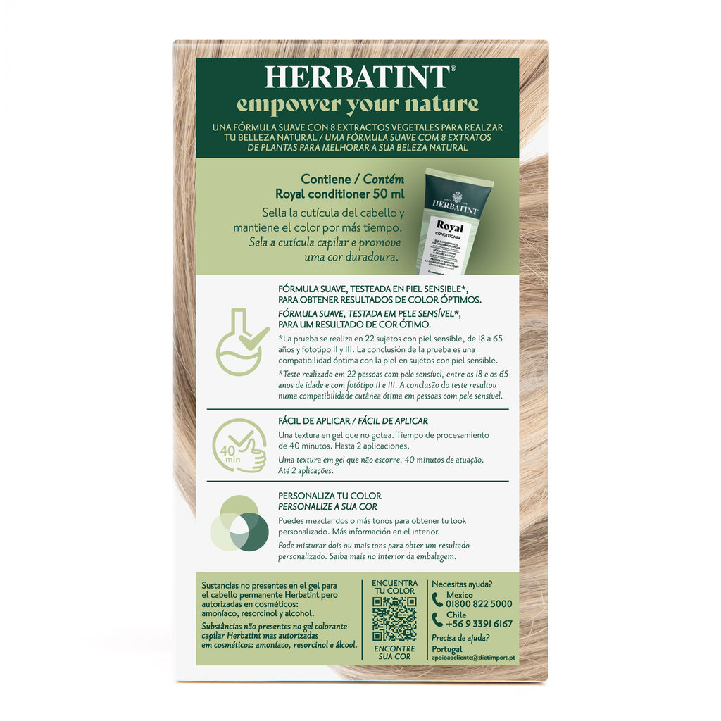 Con Herbatint, puedes disfrutar del brillo y suavidad del color de tu cabello de toda la vida. Además, puedes aclarar ligeramente tu tono natural hasta en 2 tonos más claros, siendo el 10N el tono más claro disponible. Los tonos de la categoría N siempre te ofrecerán el color natural de tu pelo.